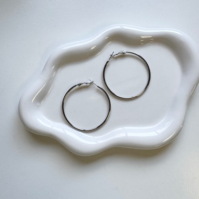 水や汗に強く変色しにくいサージカルステンレス 留め具も無いシンプルなフープピアスで、 横や後ろから見てもスッキリしたデザイン 直径3,3cm 重さ3,5g 素材316lステンレス