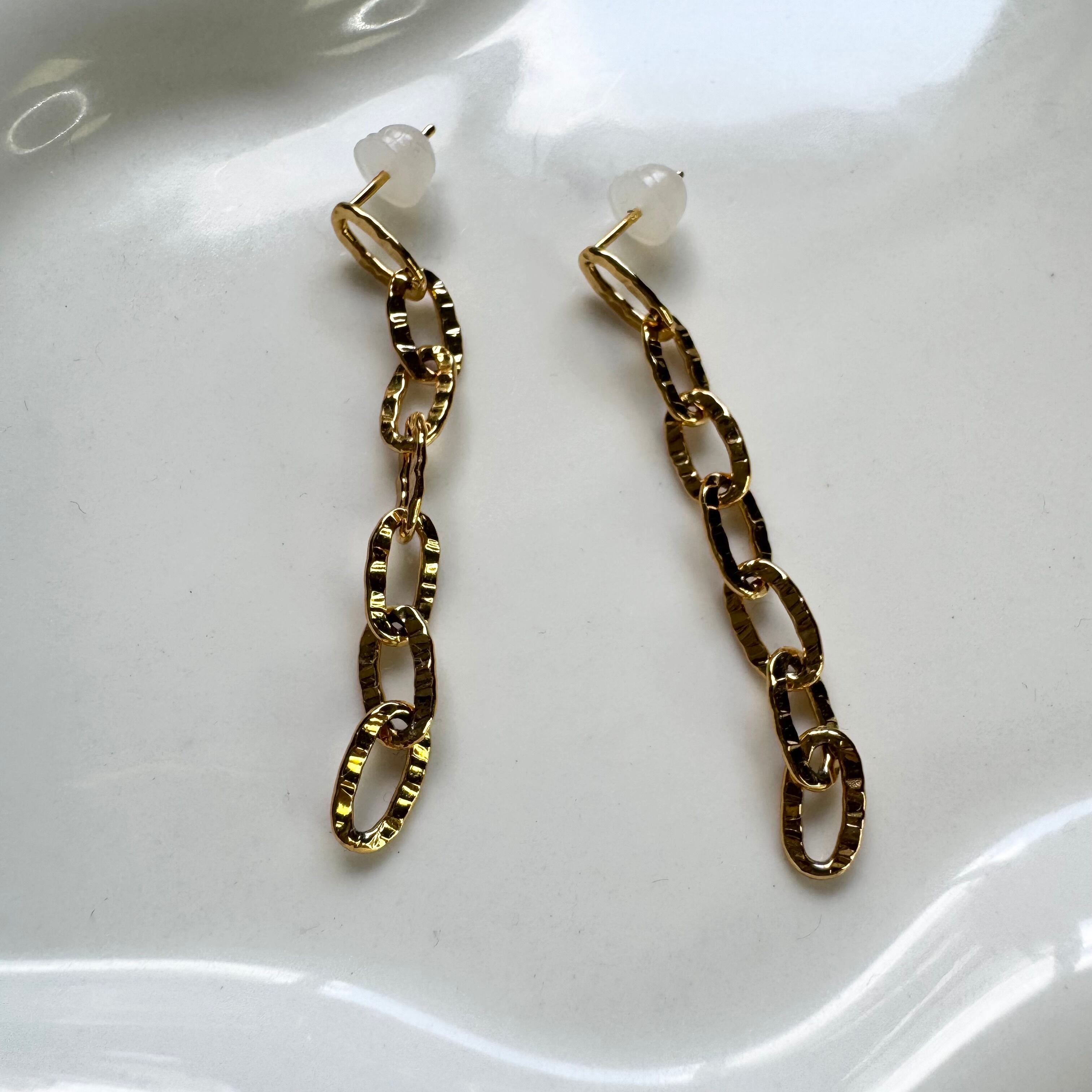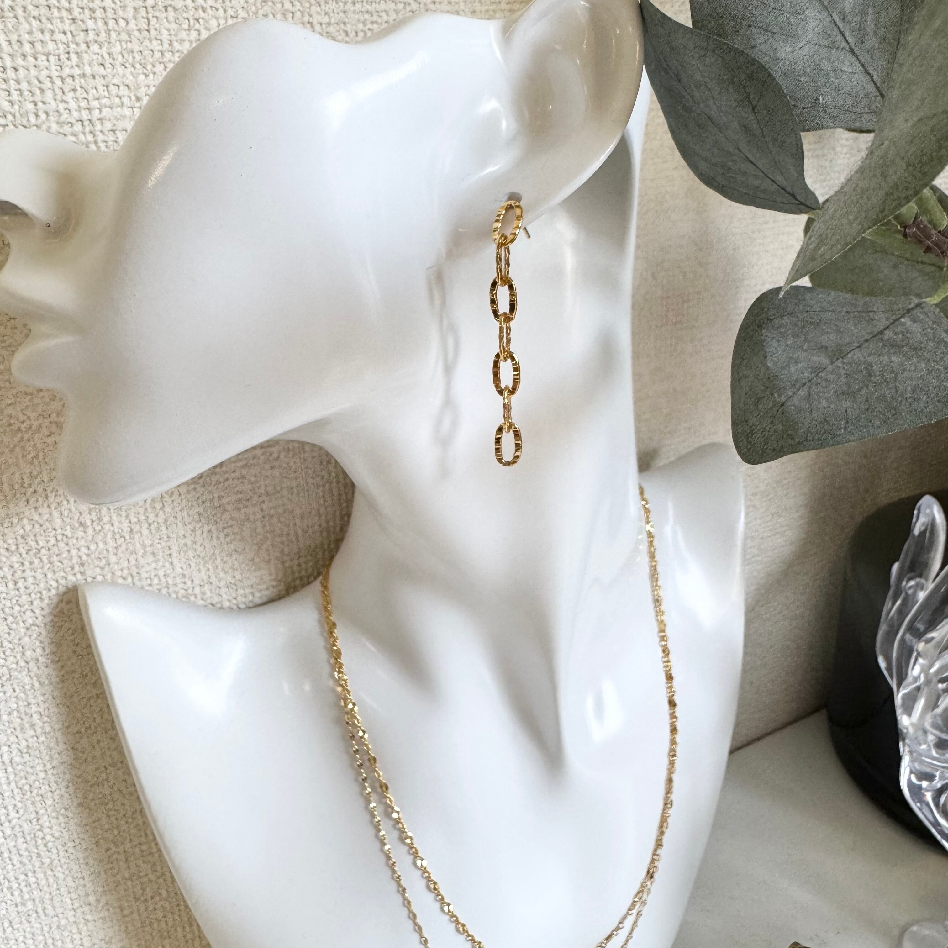 動くたびに揺れるチェーンデザインのピアス