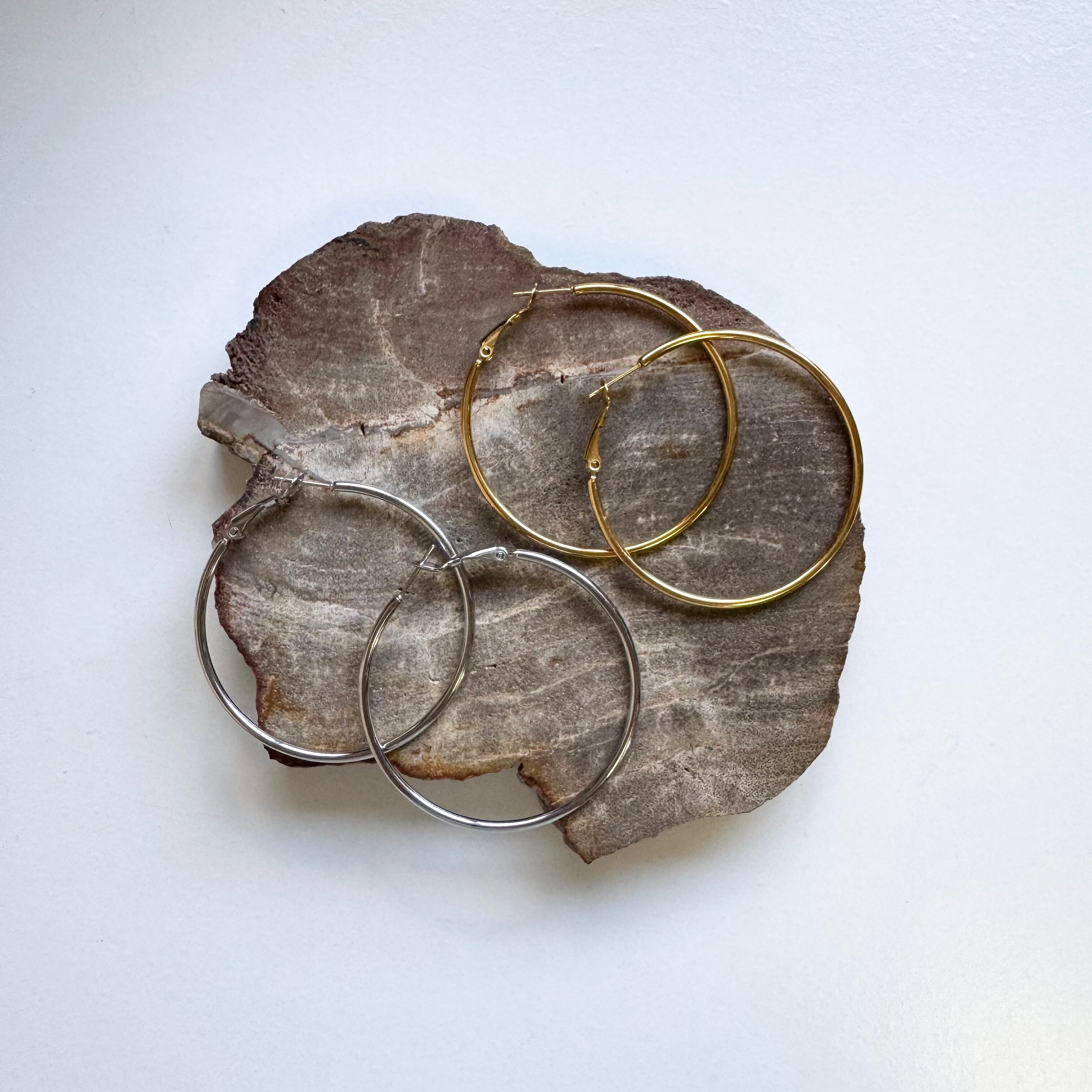とても軽く大きめのシンプルなフープピアスです。