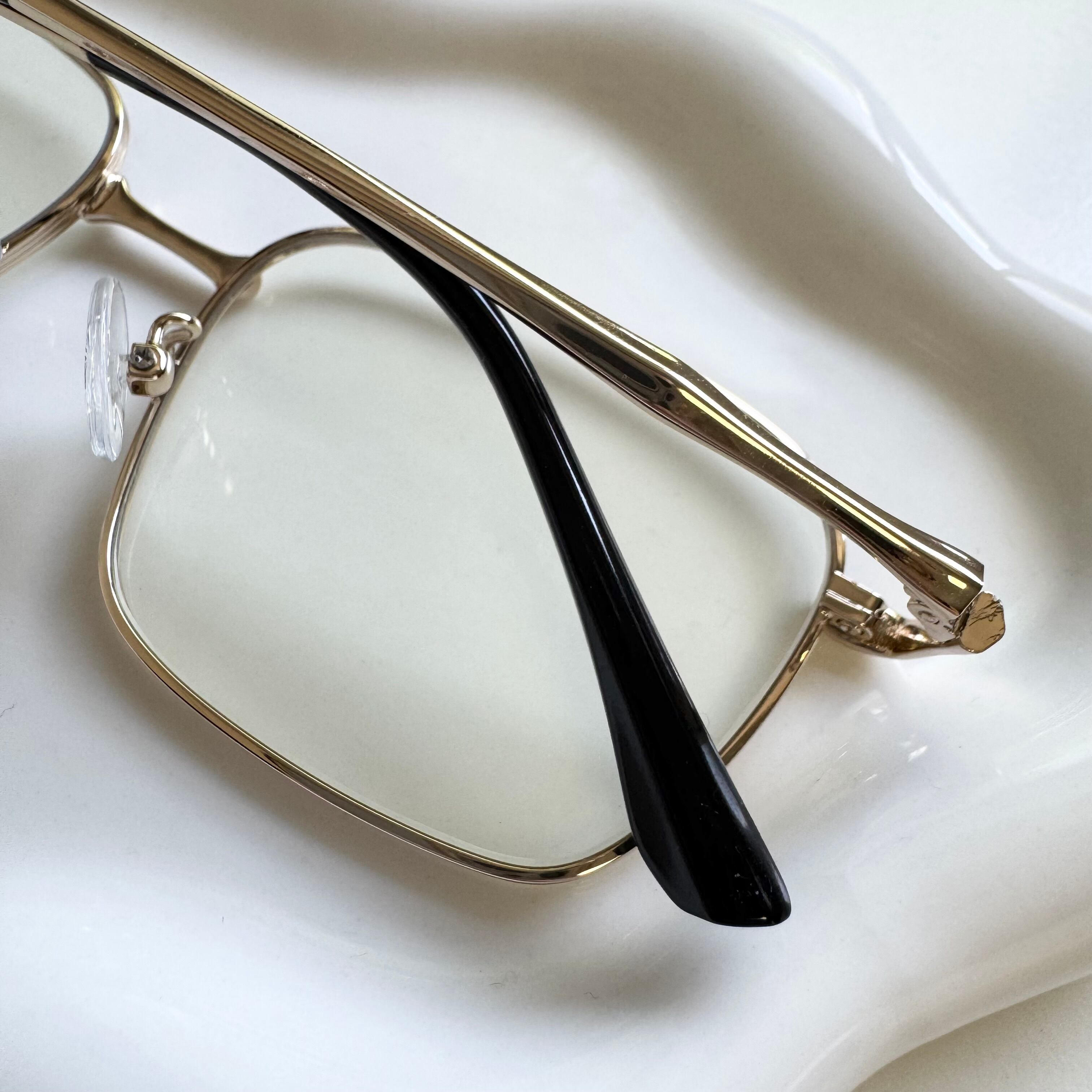 華奢なゴールドフレームがインテリジェンスな印象に見せてくれるメガネ