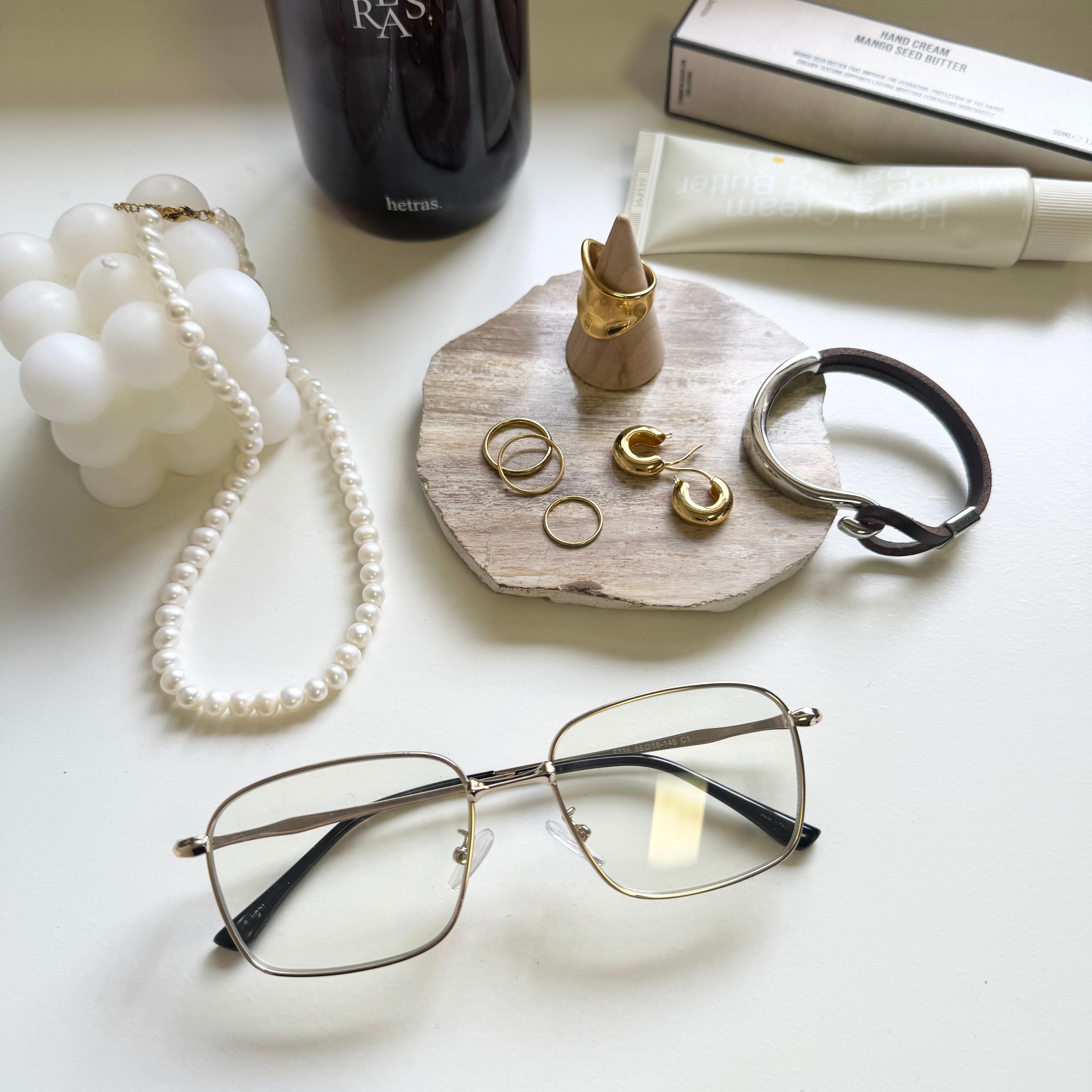 肌に馴染むフレームなので、さりげなく顔まわりを華やかに見せてくれます。